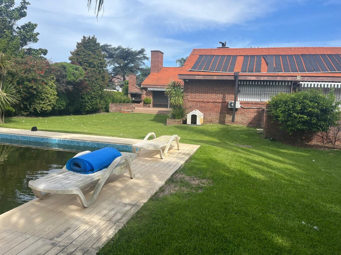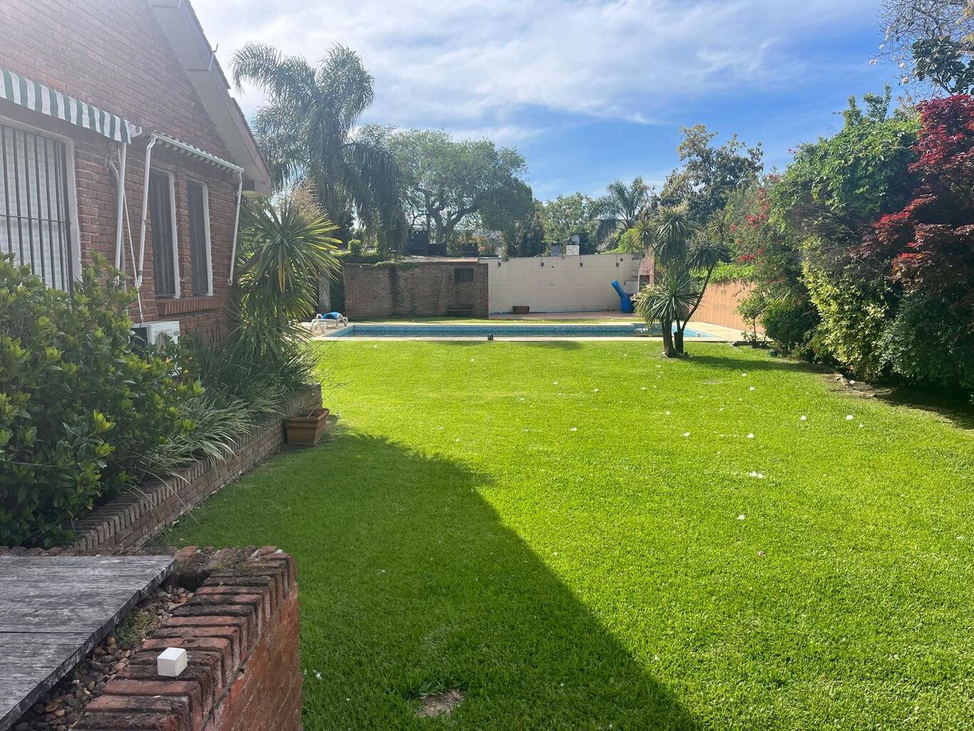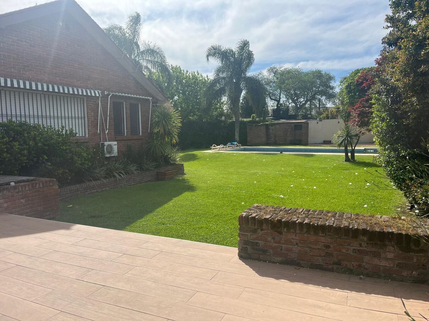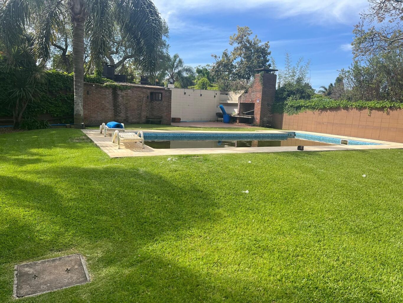 En el gran jardin con orientacion norte se desarrolla una gran piscina y parrillero para techar.